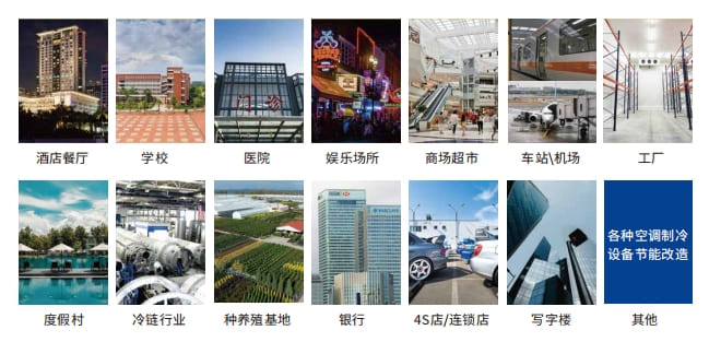 就像酒店餐廳、醫院學校、商場超市、娛樂場所等大型公共建筑場所,德力智控都針對每個領域的不同需求及屬性,一對一進行定制化制冷(空調)/制熱系統節能改造服務!